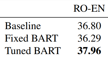 BART在WMT16 Romanian-English上与其他模型的对比结果如Table 8所示。